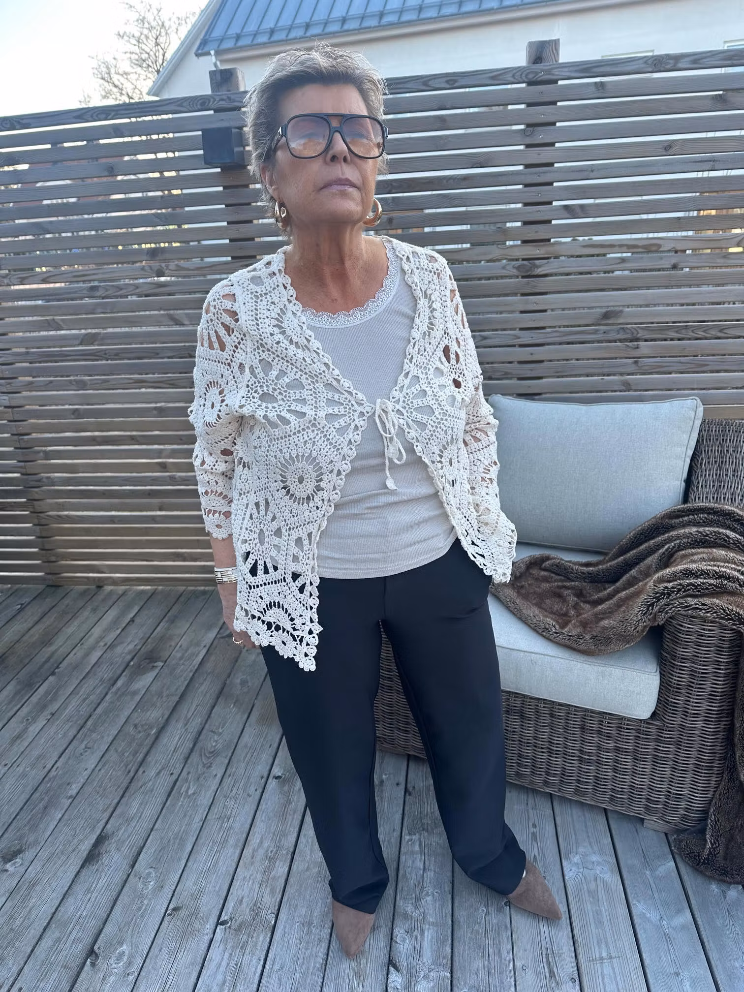 I lager. VIRKAD KOFTA - Beige 399 kr Storlek ONESIZE Lägg i varukorgen Leverantör: Caramelle fashion Snygg, trendig kofta i boho stil med knytning framtill. Modellen är 160 cm och bär stl. One size.